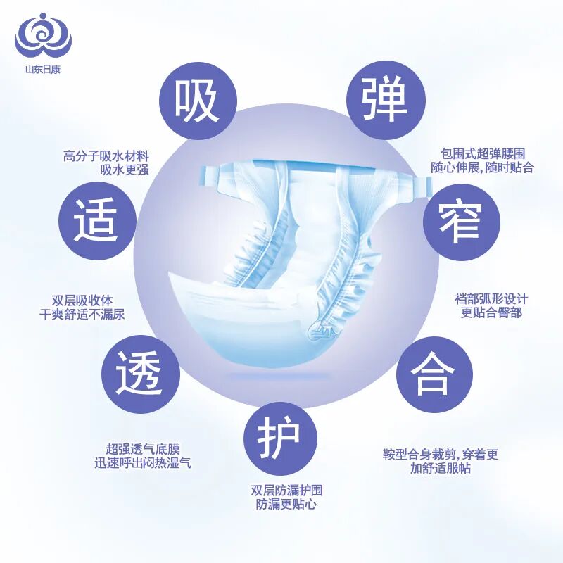 怡潔康紙尿褲是由山東日康衛(wèi)生用品有限公司獨(dú)家研發(fā)生產(chǎn),為一次性使用的紙類(lèi)尿失禁用品,成人護(hù)理產(chǎn)品,具有使用簡(jiǎn)單、衛(wèi)生清潔、柔軟舒適等特點(diǎn)。它不僅能夠保證使用者身體干爽舒適、防止臟污床單、褥墊,杜絕使用者之間、使用者與護(hù)理人員之間交叉感染的可能,同時(shí)也減少醫(yī)護(hù)人員及家人的工作負(fù)擔(dān),免受每日換洗床單之苦,是醫(yī)院、家庭護(hù)理的理想產(chǎn)品。